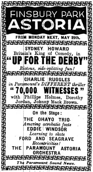 | December | Taken over by Paramount and renamed “The Paramount Astoria” | |||