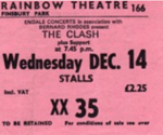 The Clash's first major headline tour, the White Riot Tour, with The Jam (who pull out half way through after disagreements over money and sound mixes) This show is a punk milestone - the song White Riot led to fans tearing out 200 seats and throwing the wreckage onstage. Unbelievably a 10cm piece of broken seat with a text by Caroline
