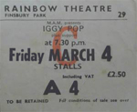 | 4th/5th March | Iggy Pop, The Vibrators | ![]() |